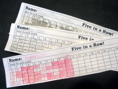 [example of students’ score sheets for Five in a Row]