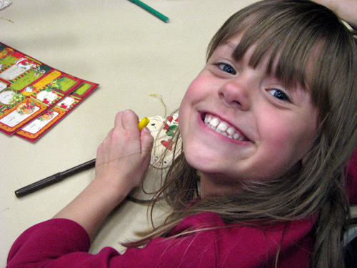 – homemade Christmas Ornaments (colored wooden ornaments with markers)