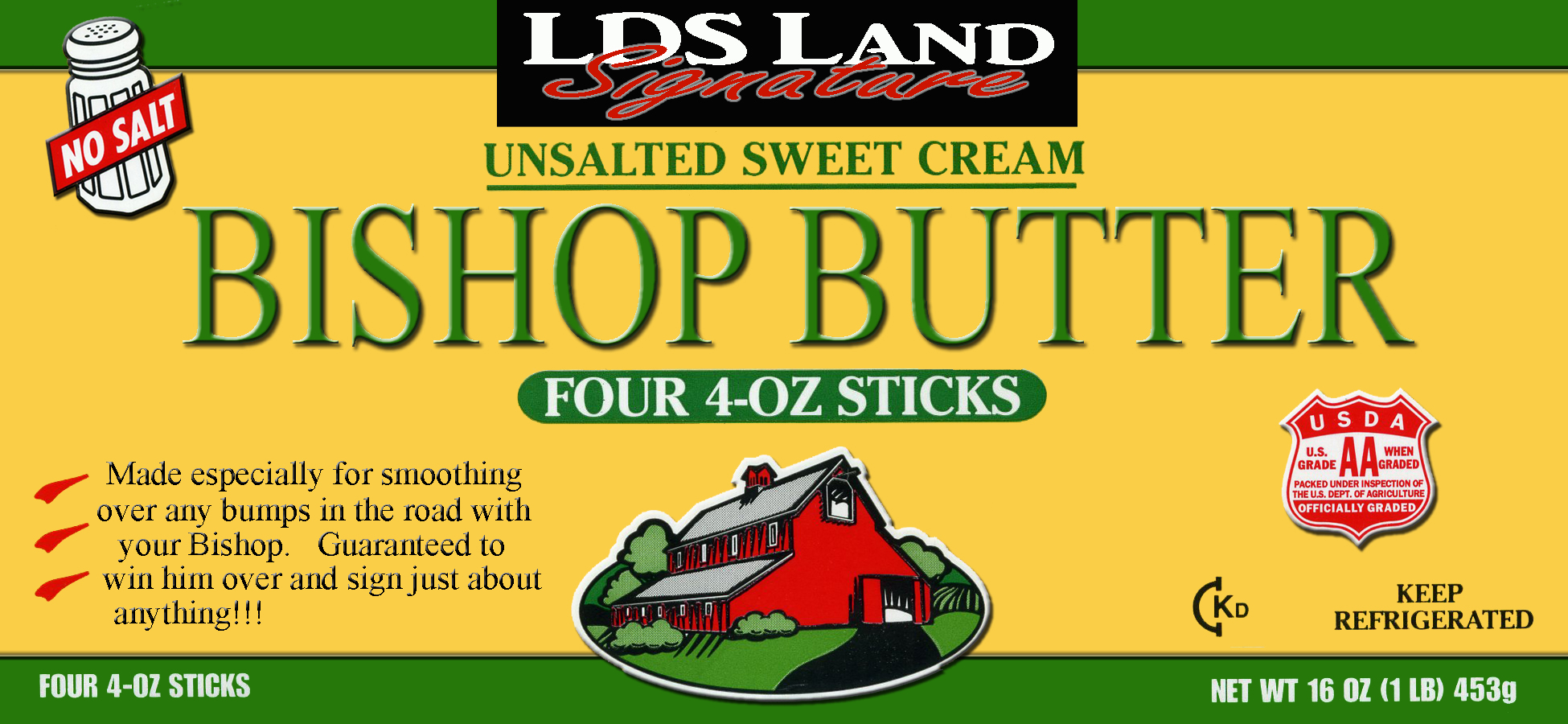 * Bishop Butter: “Made especially for smoothing over any bumps in the road with your Bishop. Guaranteed to win him over and sign just about anything!!”