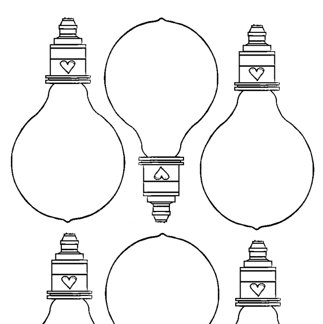 “Blank lightbulbs” needs to be printed on thick white cardstock (regular copier paper is too thin to hide the yellow or black paper on the other side). You need 22 of these bulbs, but they come 6 on a page. Once all printed just cut them out leaving a bit of an edge around the outlines so as to hide the edging of the yellow or black paper behind it.